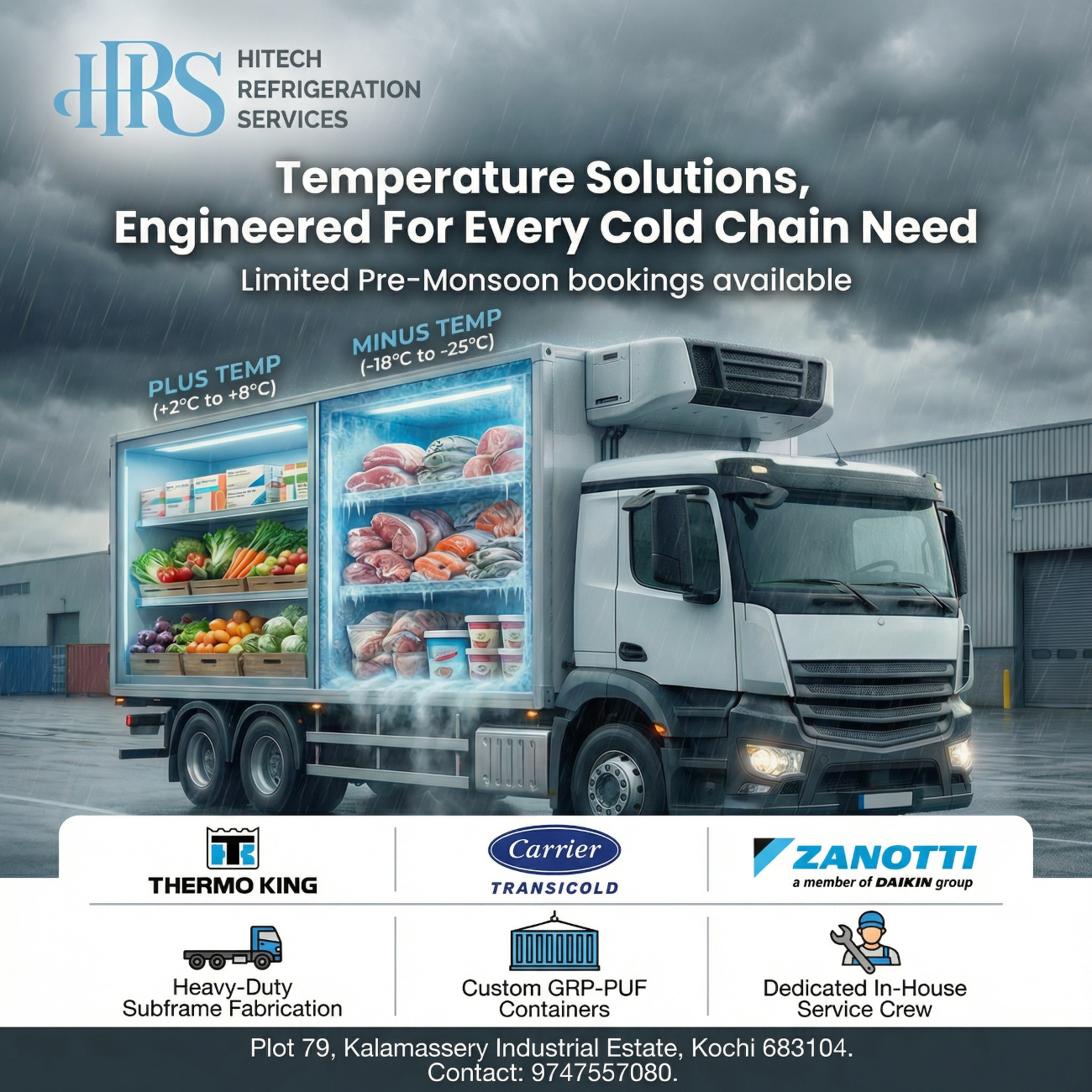 HRS is headquartered in Kerala and operates across South India, serving a client base that spans logistics companies, fleet owners, food and pharma businesses, hospitality, and facility managers requiring reliable refrigeration and cooling across varied environments.