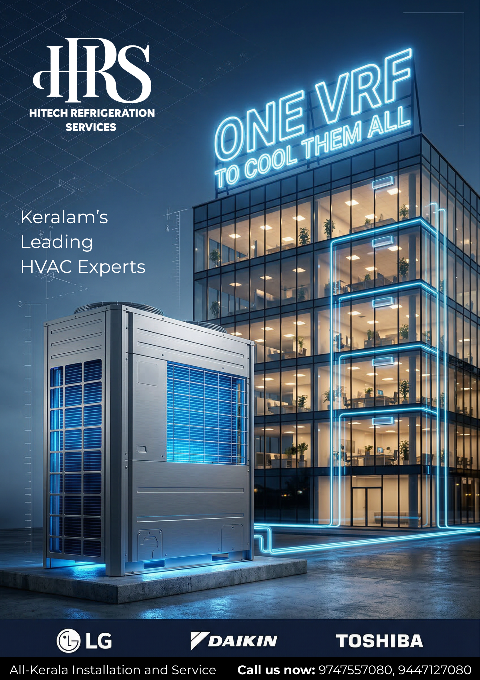 Hitech Refrigeration Services Pvt. Ltd. (HRS) is a Kerala-based total cooling solutions company with over 25 years of combined technical experience across five core service divisions. Projects are handled end to end, from design and equipment selection through installation, commissioning, annual maintenance and repairs.